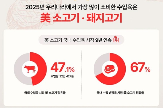 ¹Ì±¹À°·ù¼öÃâÇùȸ´Â 19ÀÏ ±¹³» Åë°ü ÀÚ·á¿Í ¼ÒºñÀÚ Á¶»ç¸¦ ¹ÙÅÁÀ¸·Î ÇÑ ¡®2025³â ¹Ì±¹»ê ¼Ò°í±â ÇöȲ¡¯À» ¹ßÇ¥Çϰí, ¹Ì±¹»ê À°·ù°¡ Çѱ¹ ¼öÀÔÀ° ½ÃÀå¿¡¼­ È®°íÇÑ ÀÔÁö¸¦ À̾°í ÀÖ´Ù°í ¹àÇû´Ù.