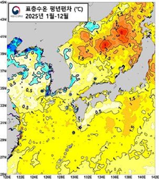 ¼ö°ú¿øÀÌ 1960³â´ëºÎÅÍ ½ÃÀÛÇÑ ¿ì¸®³ª¶ó ¹èŸÀû °æÁ¦¼ö¿ª(EEZ) °úÇÐÁ¶»ç¼± °üÃø °á°ú¿¡ µû¸£¸é 2025³â ÇϹݱâ(8¡12¿ù) ¿ì¸® ¹Ù´ÙÀÇ Ç¥Ãþ ¼ö¿ÂÀº 21.27µµ·Î °üÃø »ç»ó ¿ª´ë ÃÖ°í ¿¬Æò±Õ ¼ö¿ÂÀ» ±â·ÏÇÏ¿´´ø 2024³â(22.28µµ) ´ÙÀ½À¸·Î ³ôÀº ¼ö¿ÂÀ» ±â·ÏÇß´Ù.
