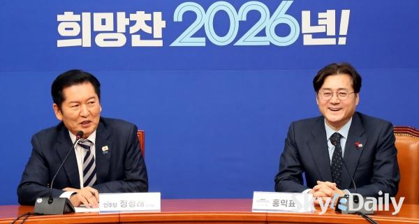 ¡ã Á¤Ã»·¡ ´õºÒ¾î¹ÎÁÖ´ç ´ëÇ¥°¡ 21ÀÏ ±¹È¸¿¡¼ ÃëÀÓ ÀλçÂ÷ ¹æ¹®ÇÑ È«ÀÍÇ¥ û¿Í´ë Á¤¹«¼ö¼®À» ¸¸³ª ¾Ç¼öÇϰí ÀÖ´Ù. ¹Ú¹Ì³ª ±âÀÚ ¨Ï½ºÄ«À̵¥Àϸ®