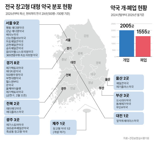 ÀÌÈÄ ¸¶Æ®¡¤Ã¢°íÇüÀ» Ç¥¹æÇÏ´Â ´ëÇü¾à±¹ °³¼³ÀÌ ¿ìÈÄÁ×¼ø »ý±â°íÀÖ´Ù. ºÐÆ÷µÈ °÷À» º¸¸é ¼¿ï°ú °æ±â µî ¼öµµ±Ç ºñÀ²ÀÌ °¡Àå ³ô¾Ò°í ÃÖ±Ù¿¡´Â Àü¶óµµ ±¤ÁÖ ±âÁ¡À¸·Î Á¦ÁÖ µî Áö¹æ ¼Òµµ½Ã±îÁö ¹øÁö°í ÀÖ´Ù. â°íÇü ¾à±¹ÀÇ ºñ³À» ¹ÞÀÚ ¶Ç ´Ù¸¥ ÇÁ·£Â÷ÀÌÁî ºê·£µå Çü½Ä¿¡ ¿ÉƼ¸¶À£´Ï½º¹ÂÁö¾ö¾à±¹ ½Å°³³ä µµ½ÉÇü Å¥·¹ÀÌ¼Ç ´ëÇü ±¹µµ ź»ýÇß´Ù.