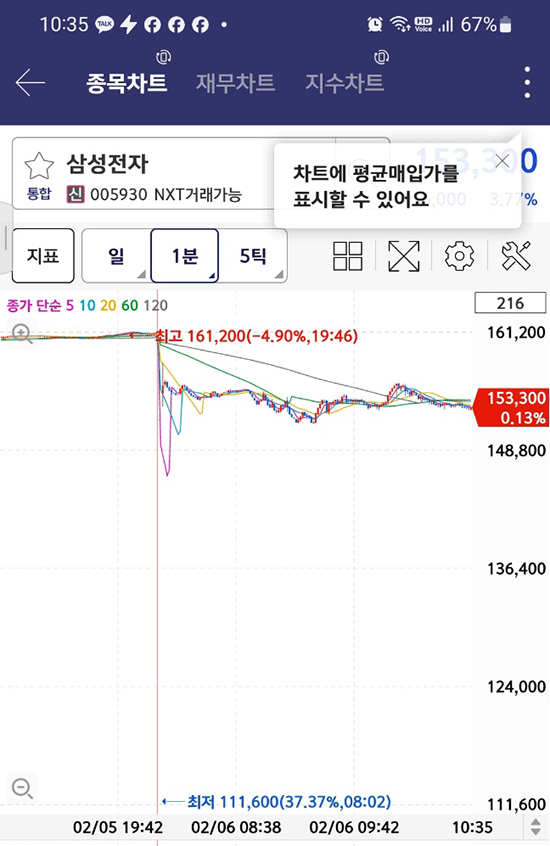 »ï¼ºÀüÀÚ´Â 6ÀÏ ³Ø½ºÆ®·¹À̵å(NXT) ÇÁ¸®¸¶ÄÏ¿¡¼ ¿ÀÀü 8½Ã 2ºÐÂë Àü °Å·¡ÀÏ Á¾°¡(15¸¸9300¿ø) ´ëºñ 29.94% ±Þ¶ôÇÑ 11¸¸1600¿ø±îÁö ¹Ð¸®¸ç »ç½Ç»ó ÇÏÇѰ¡ ±¸°£À» ÅÍÄ¡Çß´Ù. ´ëÇ¥ Á¾¸ñÀÌ °³Àå ÀüºÎÅÍ ±Þ¶ôÇÏÀÚ ÅõÀÚÀÚµéÀº À§ÇèÀÚ»ê ºñÁßÀ» ÁÙÀÌ´Â ÂÊÀ¸·Î ºü¸£°Ô ¿òÁ÷¿´°í, °³Àå Á÷ÈÄ ¸Åµµ ¹°·®ÀÌ ÇѲ¨¹ø¿¡ ½ñ¾ÆÁ³´Ù.