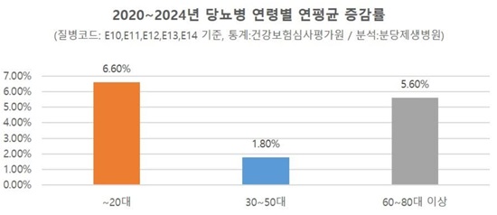 ±¸Ã¼ÀûÀ¸·Î 2020³â ´ç´¢º´ ȯÀÚ¼ö´Â 4¸¸6271¸í¿¡¼ 2024³â¿¡´Â 5¸¸9732¸íÀ¸·Î 5³â°£ ¿¬Æò±Õ 6.6%ÀÇ Áõ°¡¼¼¸¦ º¸¿´´Ù. 60´ë ÀÌ»ó 5.6% Áõ°¨·üº¸´Ù ³ô¾Ò´Ù. ÁßÀå³âÀÇ ¸¸¼ºÁúȯÀ̶ó°í ¿©°ÜÁ³´ø ´ç´¢º´ÀÌ ÀþÀº ¼¼´ë·Î ¿Å°ÜÁ® °¡°í ÀÖ´Ù.