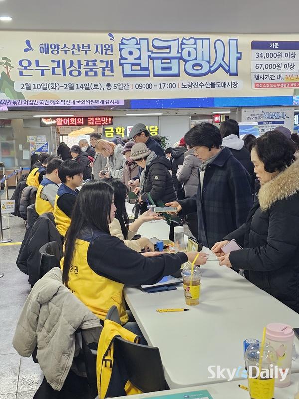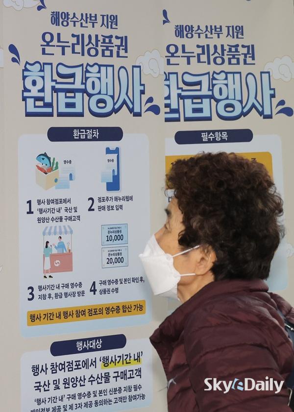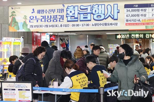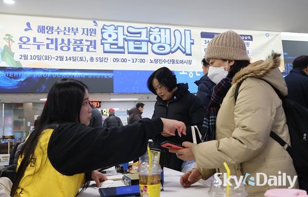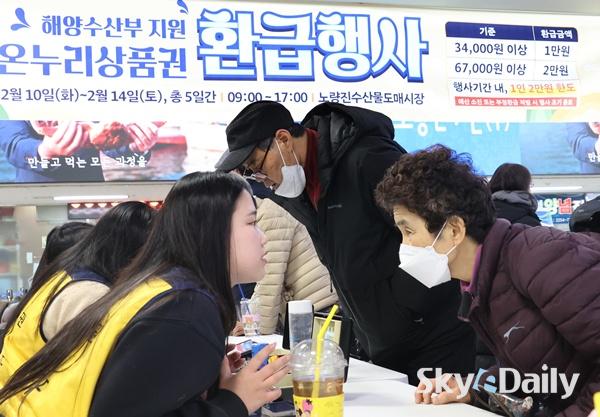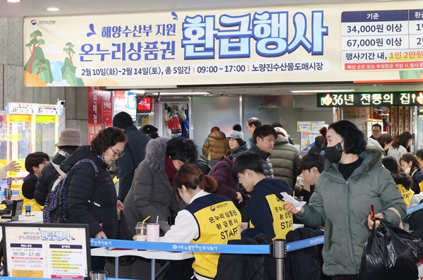 ¡ã ¼³¸íÀý ¼ÒºñÀÚ ¹°°¡ºÎ´ã ¿Ïȸ¦ À§ÇØ Àü±¹ ÀüÅë½ÃÀå¿¡¼ ¡®¼³¸ÂÀÌ ÀüÅë½ÃÀå ¿Â´©¸®»óǰ±Ç ȯ±ÞÇà»ç¡¯¸¦ ½ÃÀÛÇÑ 10ÀÏ ¼¿ï ³ë·®Áø¼ö»ê½ÃÀå¿¡¼ ½Ã¹ÎµéÀÌ ¿Â´©¸®»óǰ±Ç ȯ±ÞÀ» ¹Þ°í ÀÖ´Ù. 15ÀϱîÁö ÁøÇàÇÏ´Â À̹ø Çà»ç´Â ³ó¸²Ãà»ê½ÄǰºÎ, ÇØ¾ç¼ö»êºÎ°¡ °¢°¢ ±¹»ê ³óÃà»ê¹°, ¼ö»ê¹°¿¡ ´ëÇØ Àü±¹¿¡¼ ÃßÁøÇÑ´Ù. Çà»ç ±â°£ Áß Âü¿© Á¡Æ÷¿¡¼ ±¹»ê ½Å¼± ³óÃà»ê¹° ¶Ç´Â ¼ö»ê¹°À» ±¸¸ÅÇÑ ¼ÒºñÀÚ´Â ±¸¸Å ±Ý¾×ÀÇ ÃÖ´ë 30%¸¦ ¿Â´©¸®»óǰ±ÇÀ¸·Î ȯ±Þ¹ÞÀ» ¼ö ÀÖ´Ù. ÀÌÁ¾¿ø ±âÀÚ ¨Ï½ºÄ«À̵¥Àϸ®