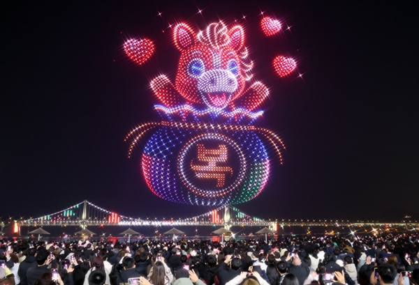 ¡ã ¼³ ¿¬ÈÞ Ã¹³¯ÀÎ 14ÀÏ ¿ÀÈÄ ºÎ»ê ¼ö¿µ±¸ ±¤¾È¸® ÇØº¯¿¡¼ M µå·Ð ¶óÀÌÆ® ¼î ¼³ Ưº°°ø¿¬ÀÌ ÆîÃÄÁö°í ÀÖ´Ù. À̳¯ °ø¿¬Àº 'º¹ÀÌ ±êµå´Â ¼³³¯'À» ÁÖÁ¦·Î ¾×¿îÀ» ¸·´Â Àå½Â, ¹Ý°¡¿î ¼Ò½ÄÀ» ÀüÇÏ´Â ±îÄ¡, º¹À» ´ã´Â º¹ÁÖ¸Ó´Ï µî ÀüÅë »ó¡¹°°ú º´¿À³â 'ºÓÀº ¸»ÀÇ ÇØ'¸¦ »ó¡ÇÏ´Â ¿¬Ãâ µî Çѱ¹ °íÀ¯ÀÇ ÀüÅë¹Ì¸¦ ´ãÀº ÄÜÅÙÃ÷¸¦ ¼±º¸¿´´Ù. ¿¬ÇÕ´º½º