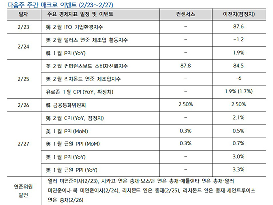 2¿ùÀÇ ¸¶Áö¸· ÁÖÀÎ 23ÀϺÎÅÍ 27ÀÏÀº ¡®ÇÑÀº ¼öÁ¤Àü¸Á(±¹³» ±Ý¸® ±â´ëÀÇ Áß½É)¡¯°ú ¡®¹Ì±¹ PPI¡¤¿¬ÁØ ¹ß¾ð(±Û·Î¹ú ±Ý¸®ÀÇ ¹æÇâŰ)¡¯ÀÌ ¸Â¹°¸®´Â ±¸°£ÀÌ´Ù.