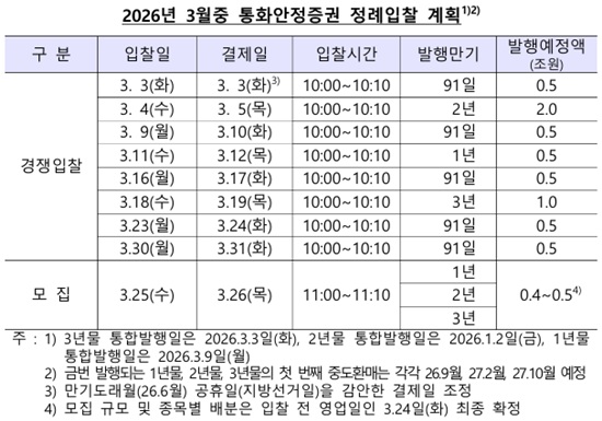 ÇÑÀºÀº °ø°³½ÃÀå¿î¿µ ¿©°Ç°ú ä±Ç½ÃÀå »óȲ µî¿¡ µû¶ó ¹ßÇà°èȹÀÌ ¼öÁ¤µÉ ¼ö ÀÖ´Ù¸ç ÀÔÂû Àü ¿µ¾÷ÀÏ¿¡ °ø°íµÇ´Â ÃÖÁ¾ ÀÔÂûÁ¤º¸¸¦ ¹Ýµå½Ã È®ÀÎÇÒ °ÍÀ» ´çºÎÇß´Ù.