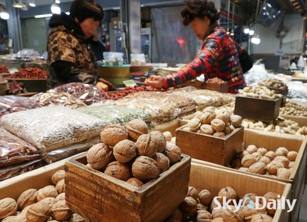 ¡ã Á¤¿ù´ëº¸¸§À» ¾ÕµÐ 2ÀÏ ¼¿ï µ¿´ë¹®±¸ °æµ¿½ÃÀå¿¡ ÇÇÈ£µÎ, ¶¥Äá, ¹ã µî ºÎ·³ÀÌ ½×¿©ÀÖ´Ù. Á¤¿ù´ëº¸¸§Àº °¡Àå Å« º¸¸§À̶ó´Â ¶æÀ¸·Î ºÎ·³(ÀÌ·Î ±ú¼ ¸ÔÀ¸¸é ºÎ½º·³ÀÌ »ý±âÁö ¾Ê´Â´Ù°í ÇÏ¿© ¸Ô´Â´Ù.), ¿À°î¹ä(½ÒÁ¶¼ö¼öÆÏÄá)±Í¹àÀ̼ú µîÀ» ¸ÔÀ¸¸ç ÀüÅë ¹Î¼Ó³îÀ̸¦ ÇÏ¸é¼ ÇÑ ÇØÀÇ ¹«»çÅÂÆòÇÔÀ» ¹Ù¶ó´Â ÀüÅë ¸íÀý Áß Çϳª´Ù. ¹Ú¹Ì³ª ±âÀÚ ¨Ï½ºÄ«À̵¥Àϸ®
