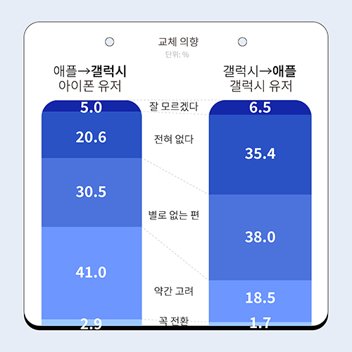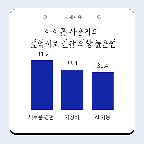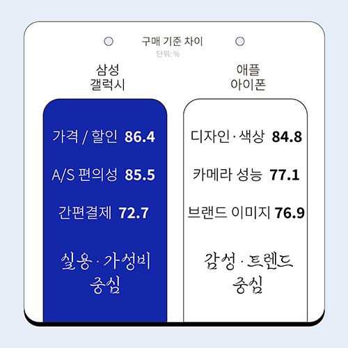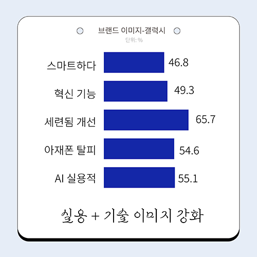 ¿¥ºê·¹ÀÎ Æ®·»µå¸ð´ÏÅÍ Á¶»ç¿¡ µû¸£¸é »ï¼º °¶·°½Ã »ç¿ë ºñÁßÀÌ 63.2%·Î ¾ÖÇà ¾ÆÀÌÆù(36.8%)À» Å©°Ô ¾Õ¼¹´Ù. °¶·°½Ã´Â AI ±â´É°ú °¡°Ý °æÀï·ÂÀ» ±â¹ÝÀ¸·Î ¡®¼¼·ÃµÇ°í ½Ç¿ëÀûÀÎ ºê·£µå¡¯·Î À̹ÌÁö°¡ °³¼±µÈ ¹Ý¸é, ¾ÆÀÌÆùÀº °í±Þ½º·¯¿î À̹ÌÁö¿¡µµ ºÒ±¸Çϰí Çõ½Å¼º µÐÈ­¿Í ³ôÀº °¡°Ý ºÎ´ãÀ¸·Î ±â´ë°¨ÀÌ ³·¾ÆÁø °ÍÀ¸·Î ³ªÅ¸³µ´Ù. ƯÈ÷ 20´ë¸¦ Áß½ÉÀ¸·Î ¾ÆÀÌÆù¿¡¼­ °¶·°½Ã·Î À̵¿ÇÏ´Â È帧ÀÌ °¨ÁöµÇ¸ç, ÀþÀº Ãþ ³» ºê·£µå ÀÎ½Ä º¯È­°¡ ¶Ñ·ÇÇØÁö°í ÀÖ´Ù.