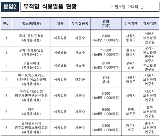 ¾Õ¼­ ³­ÇØ 7¿ù¿¡µµ Ä¿ÇÇÀü¹®Á¡¡¤ÆÐ½ºÆ®ÇªµåÁ¡¡¤ÆíÀÇÁ¡ÀÇ Á¦ºù±â ¾óÀ½°ú ÄžóÀ½ 451°ÇÀ» °Ë»çÇØ 6°ÇÀ» ¼¼±Õ¼ö ±âÁØ Ãʰú·Î Àû¹ßÇÑ ¹Ù ÀÖ´Ù.