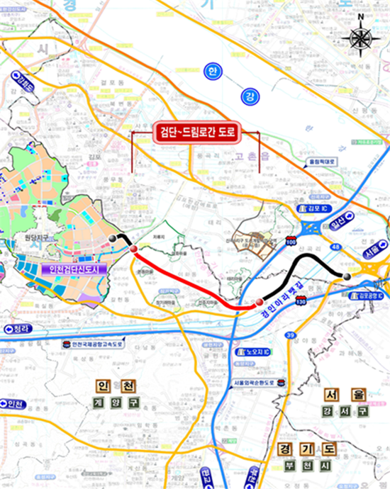 ÀÎõ±¤¿ª½Ã¿Í Çѱ¹ÅäÁöÁÖÅðø»ç(LH)´Â °Ë´ÜÁö¿ª ±¤¿ª±³Åë°³¼±À» À§ÇØ ÃßÁøÇØ ¿Â °Ë´Ü¡µå¸²·Î°£ ¿¬°áµµ·Î¸¦ 8ÀÏ ¿ÀÈÄ 2½Ã¿¡ °³ÅëÇÑ´Ù°í 2ÀÏ ¹àÇû´Ù.