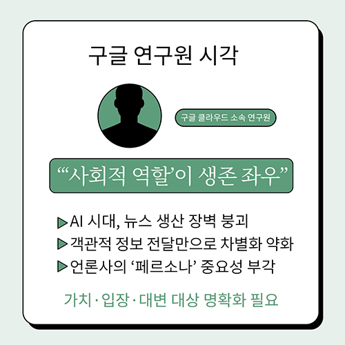 ±Û·Î¹ú ºòÅ×Å© ±â¾÷À» Áß½ÉÀ¸·Î ÀΰøÁö´É(AI) ±â¼úÀÌ Çõ¸íÀûÀ¸·Î ¹ßÀüÇϰí, ÀϹÝÀεéÀÇ È°¿ëµµ ¶ÇÇÑ ºü¸£°Ô È®»êµÇ¸é¼ ÀüÅë ¾ð·Ð »ê¾÷ÀÌ Àü·Ê ¾ø´Â º¯È¿Í µµÀü¿¡ Á÷¸éÇß´Ù. ÀÌ¿¡ ¹Î°æµÎ º»Áö ¹ßÇàÀÎÀº ±Þº¯ÇÏ´Â AI ½Ã´ë ¼Ó ¾ð·ÐÀÇ ¿ªÇÒ°ú ¹æÇâÀ» ¸ð»öÇϱâ À§ÇØ ¹Ì±¹ ½Ç¸®Äܹ븮ÀÇ ¸ÞŸ¿Í ±¸±Û ¿¬±¸¿øÀ» Á÷Á¢ ã¾Æ ÀÎÅͺ並 ÁøÇàÇß´Ù. À̹ø ÀÎÅͺä´Â AI°¡ ¾ð·Ð¿¡ ¹ÌÄ¥ ¿µÇâ°ú ÇÔ²² ¹Ì·¡ Àú³Î¸®ÁòÀÇ »ýÁ¸ Àü·«À» ¤¾îº¸´Â °è±â°¡ µÆ´Ù.