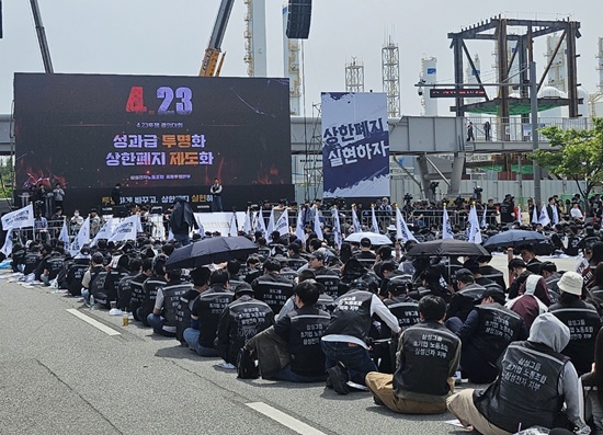 ³ëÁ¶°¡ Áýȸ µµÁß °ø°³ÇÑ ¿µ»ó ¡®¿ì¸®°¡ ½Î¿ì´Â ÀÌÀ¯¡¯¿¡¼µµ OPI »óÇÑ¿¡ µû¶ó »ï¼ºÀüÀÚ 1ÀÎ´ç ¼º°ú±ÞÀÌ ¾à 4000¸¸ ¿øÀ¸·Î SKÇÏÀ̴нº ¼º°ú±Þ°ú ¾à 10¹è Â÷À̰¡ ³´Ù´Â Á¡À» °Á¶Çß´Ù.