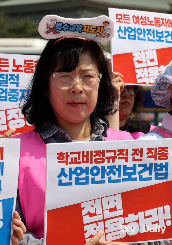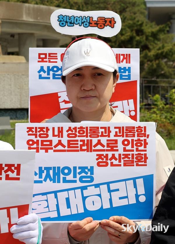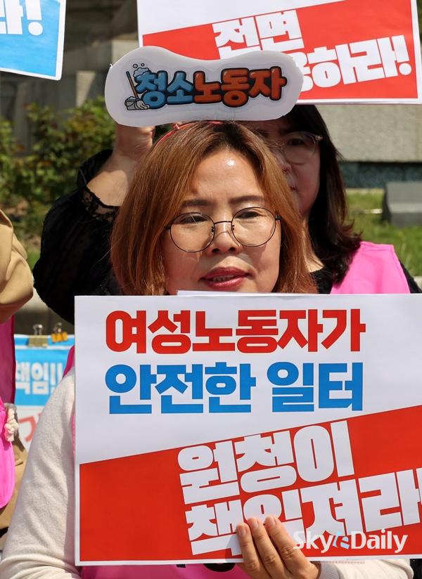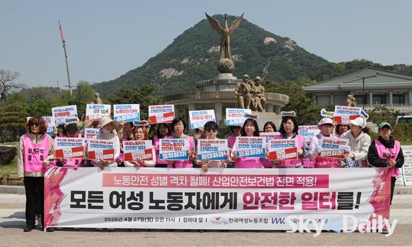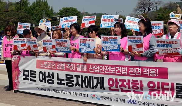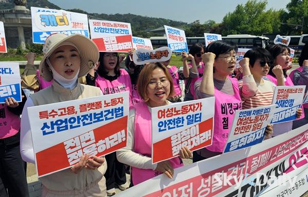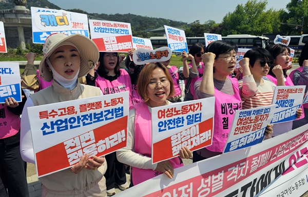 ¡ã 27ÀÏ ¿ÀÀü ¼¿ï Á¾·Î±¸ û¿Í´ë »ç¶ûä ¾Õ¿¡¼ Àü±¹¿©¼º³ëµ¿Á¶ÇÕ È¸¿øµéÀÌ ±âÀÚȸ°ßÀ» ¿°í ¼ºº°°ú °í¿ë ÇüÅ¿¡ µû¸¥ Â÷º° ¾ø´Â ¾ÈÀü¸Á ±¸ÃàÀ» Ã˱¸Çϰí ÀÖ´Ù. À̳¯ Âü¼®ÀÚµéÀº Á÷Àå ³» ¼ºÈñ·Õ°ú Æø·ÂÀ» ¡®±¹°¡À糡¯À¸·Î ±ÔÁ¤Çϸç Á¤ºÎÀÇ Áï°¢ÀûÀÎ ´ëÃ¥ ¸¶·ÃÀ» ¿ä±¸Çß´Ù. ÀÌÁ¾¿ø ±âÀÚ ¨Ï½ºÄ«À̵¥Àϸ®