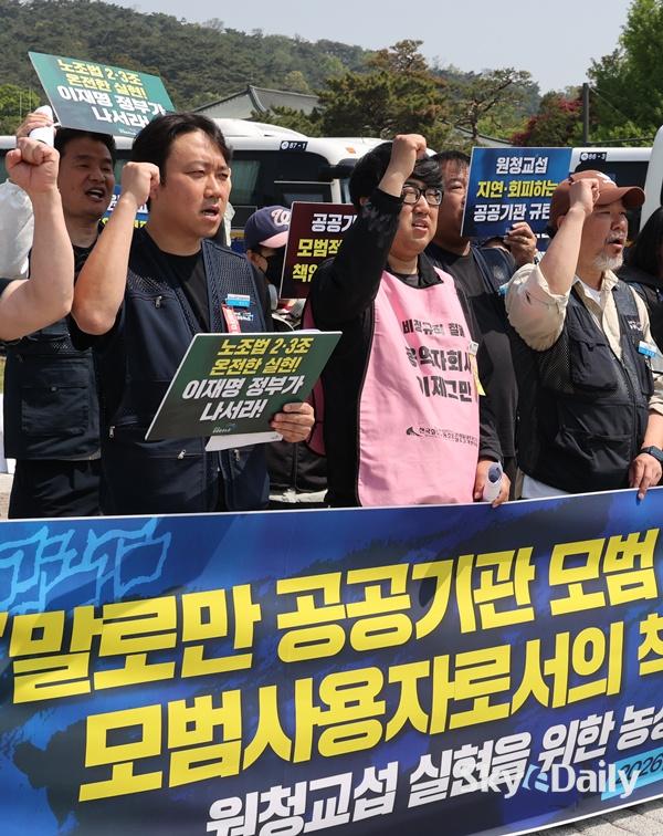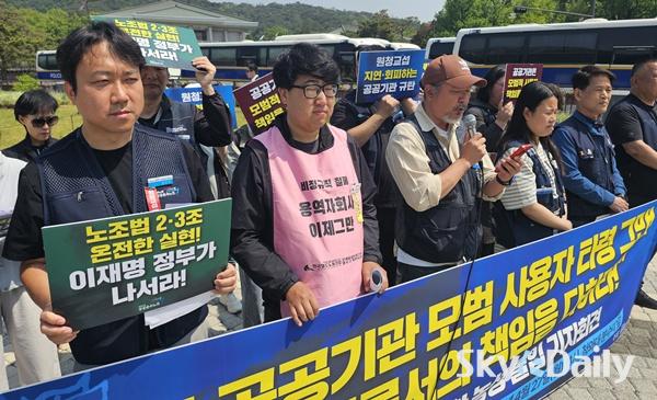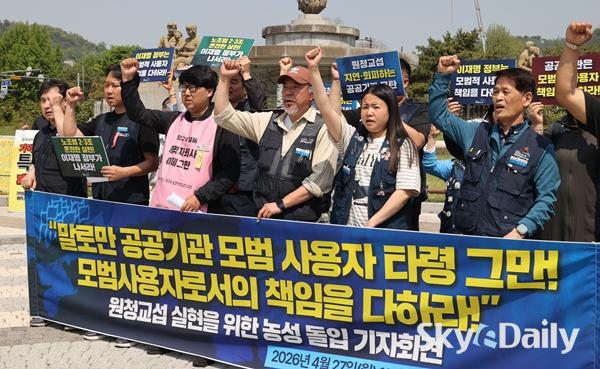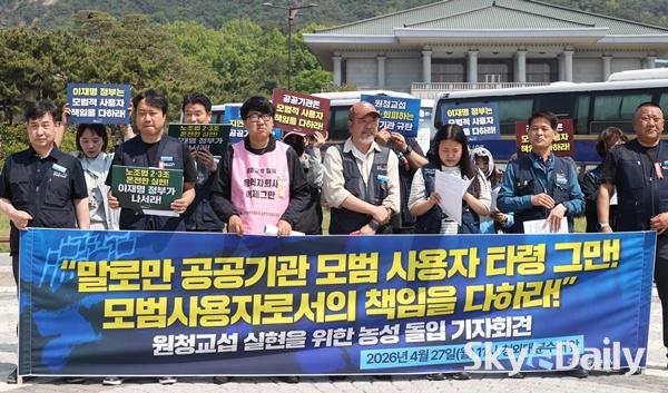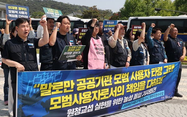 ¡ã ³ëµ¿ÀýÀ» ¾ÕµÐ 27ÀÏ ¿ÀÀü ¼¿ï û¿Í´ë ºÐ¼ö´ë ¾Õ¿¡¼ °ø°ø¿î¼ö³ëÁ¶ °ü°èÀÚµéÀÌ ¡®¿øÃ»±³¼· ½ÇÇö ³ó¼º µ¹ÀÔ ±âÀÚȸ°ß¡¯À» ¿°í Á¤ºÎÀÇ Ã¥ÀÓ ÀÖ´Â ÀÚ¼¼¸¦ Ã˱¸Çϰí ÀÖ´Ù. ³ëµ¿°è´Â ÃÖ±Ù ¹ß»ýÇÑ ¹°·ù¼¾ÅÍ Á¶ÇÕ¿ø »ç¸Á »ç°í¿¡ ´ëÇÑ Ã¥ÀÓÀÚ Ã³¹ú µîÀ» ¿ä±¸ÇÏ¸ç ´ÙÀ½ ´Þ 1ÀÏ ´ë±Ô¸ð Áýȸ¸¦ ¿¹°íÇß´Ù. ÀÌÁ¾¿ø ±âÀÚ ¨Ï½ºÄ«À̵¥Àϸ®