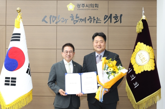 °æ±âµµ ±¤ÁÖ½ÃÀÇȸ°¡ ±¤ÁÖ½ÃÀÇȸ 4¿ù ĪÂù°ø¹«¿øÀ¸·Î Ȳż± ¹®È°ü±¤°ú °ü±¤ÆÀÀÇÆÀÀåÀ» ¼±Á¤ÇÏ¿© ÀÇÀå½Ç¿¡¼ Áõ¼¸¦ ¼ö¿©Çß´Ù°í 28ÀÏ ¹àÇû´Ù.