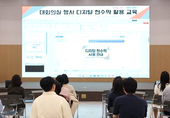 °æ±âµµ ±ºÆ÷½Ã°¡ ½Ãû ´ëȸÀǽǿ¡¼ °³ÃֵǴ °¢Á¾ Çà»ç¿Í ȸÀÇ¿¡ ±âÁ¸ÀÇ ÀÏȸ¼º ½Ç¹° Çö¼ö¸· ´ë½Å ȸÀÇ½Ç ³» ȸéÀ» Ȱ¿ëÇØ Çö¼ö¸· À̹ÌÁö¸¦ ¼ÛÃâÇÏ´Â ¡®µðÁöÅÐ Çö¼ö¸·¡¯ ¹æ½ÄÀ» µµÀÔÇϸç ģȯ°æ ÇàÁ¤°ú ¿¹»êÀý°¨¿¡ ³ª¼¹´Ù.
