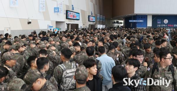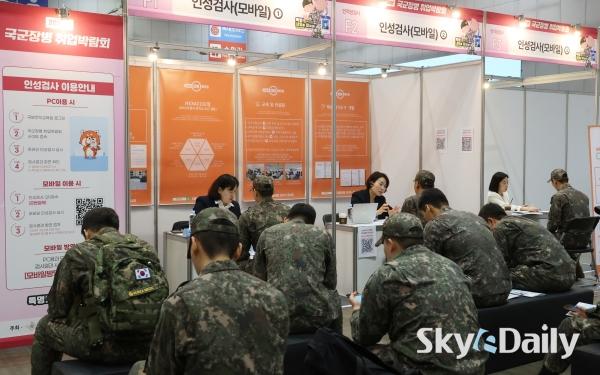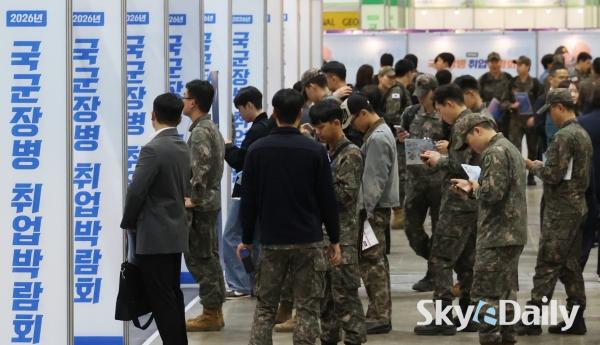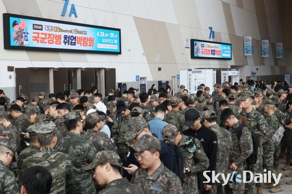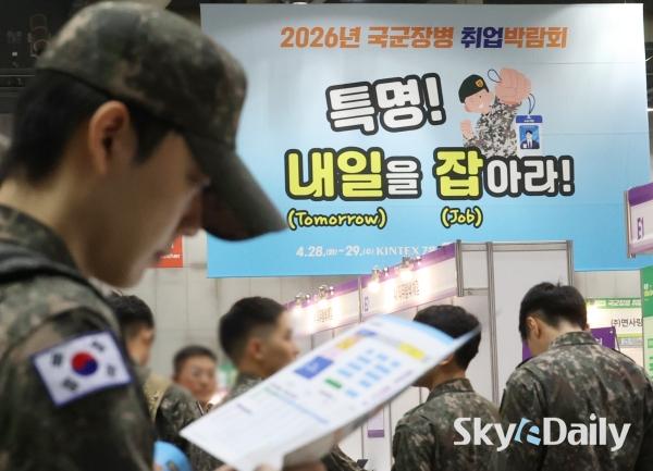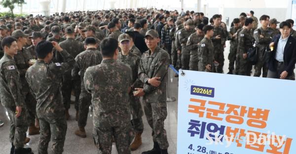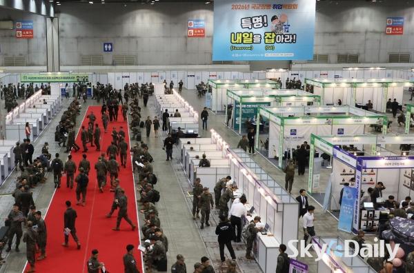 ¡ã 28ÀÏ °æ±â °í¾ç½Ã Àϻ꼱¸ ŲŨ½º¿¡¼ ¡®2026 ±¹±ºÀ庴 Ãë¾÷¹Ú¶÷ȸ¡¯ °¡ ¿¸° °¡¿îµ¥ ±º À庴µéÀÌ ÀÔÀåÀ» À§ÇØ ÁÙÀ» ¼°í ÀÖ´Ù. ±¹¹æºÎ ÁÖÃÖ·Î 28ÀϺÎÅÍ ÀÌÆ²°£ ¿¸®´Â À̹ø ±¹±ºÀ庴 Ãë¾÷¹Ú¶÷ȸ´Â Á¤ºÎ ¹× À¯°ü ±â°ü, ´ë±â¾÷, Áß°ß±â¾÷, ¿Ü±¹°è ±â¾÷À» Æ÷ÇÔÇØ 140°³ÀÇ ±â¾÷ÀÌ Âü°¡ÇÑ´Ù. ¹Ú¹Ì³ª ±âÀÚ ¨Ï½ºÄ«À̵¥Àϸ®