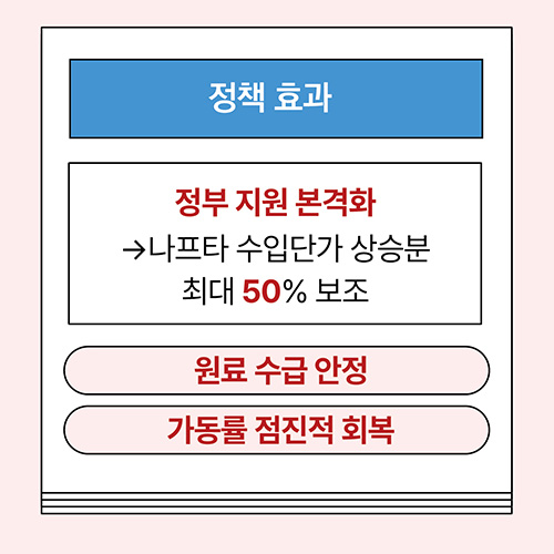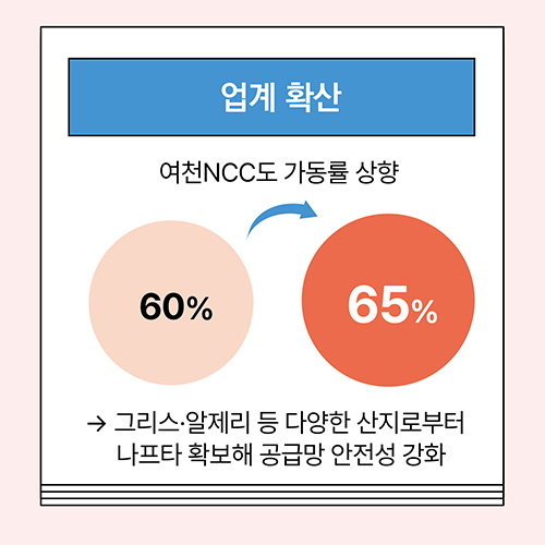 ´ëÇÑÀ¯È´Â ³ªÇÁŸºÐÇØ½Ã¼³(NCC) °¡µ¿·üÀ» ±âÁ¸ 62%¿¡¼ 72%·Î »óÇâ Á¶Á¤ÇÑ´Ù°í 28ÀÏ ¹àÇû´Ù. Áßµ¿ »çÅ Àå±âÈ·Î ¿ø·á °¡°Ý »ó½Â°ú ¼ö±Þ ºÒ¾ÈÀÌ À̾îÁöÀÚ ¾÷°è´Â °¡µ¿·üÀ» ³·Ãç¿ÔÀ¸³ª, Á¤ºÎ°¡ ³ªÇÁŸ ¼öÀԴܰ¡ »ó½ÂºÐÀÇ ÃÖ´ë 50%¸¦ Áö¿øÇÏ¸é¼ »ý»ê Á¤»óÈ¿¡ ³ª¼¹´Ù. ´ëÇÑÀ¯È´Â °ø±Þ¼± ´Ùº¯È¿Í ±âÃÊÀ¯ºÐ Á÷Á¢ ¸ÅÀÔ µîÀ¸·Î ´ëÀÀÇØ¿ÔÀ¸¸ç, ¿©ÃµNCCµµ °¡µ¿·üÀ» 65%·Î ³ô¿´´Ù.