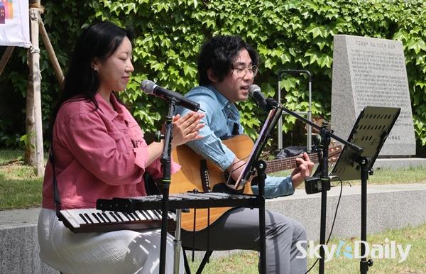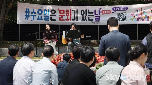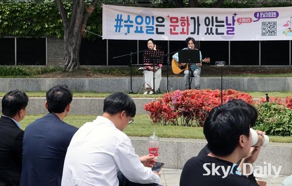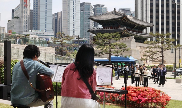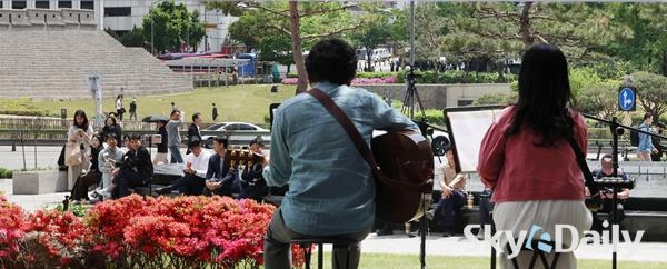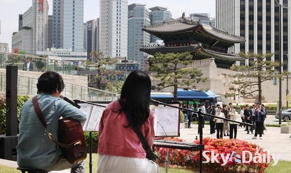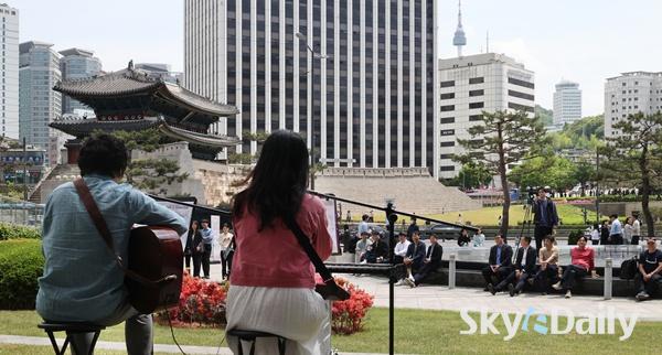 ¡ã ¡®¹®È°¡ ÀÖ´Â ³¯¡¯ÀÎ 29ÀÏ ¿ÀÈÄ, ¼¿ï Áß±¸ ´ëÇÑ»ó°øÈ¸ÀÇ¼Ò ¾Õ ±¤Àå¿¡¼ Á¡½É½Ã°£À» ¸ÂÀº Á÷ÀåÀΰú ¿Ü±¹ÀÎ °ü±¤°´µéÀÌ ¾îÄí½ºÆ½ ¹ö½ºÅ· °ø¿¬À» Áñ±â°í ÀÖ´Ù. ´ëÇÑ»óÀÇ´Â ½Ã¹Îµé¿¡°Ô È޽İú ¿©À¯¸¦ ¼±»çÇϱâ À§ÇØ À̹ø ¹«´ë¸¦ ¸¶·ÃÇß´Ù. ÀÌÁ¾¿ø ±âÀÚ ¨Ï½ºÄ«À̵¥Àϸ®