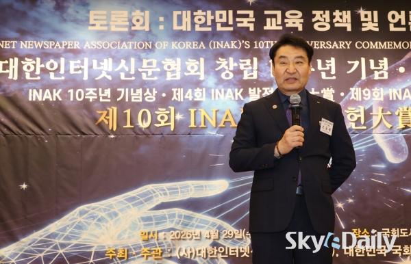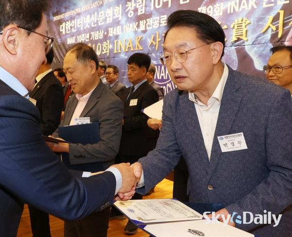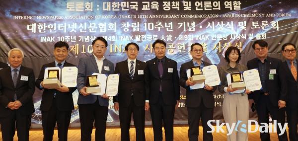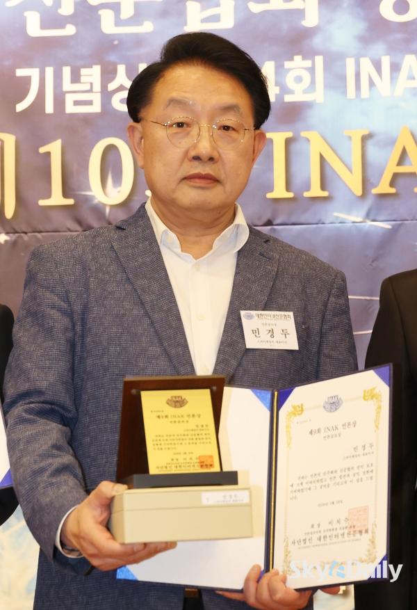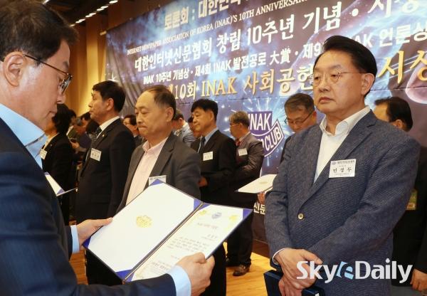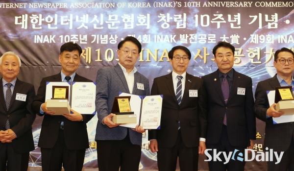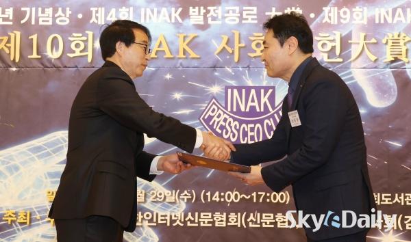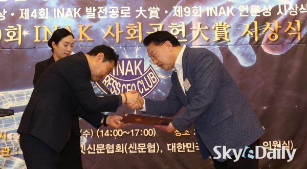 ¡ã ¹Î°æµÎ(¿À¸¥ÂÊ) ½ºÄ«À̵¥Àϸ® ´ëÇ¥À̻簡 'INAK ¾ð·Ð»ó'À» ¼ö»óÇϰí ÀÖ´Ù.
