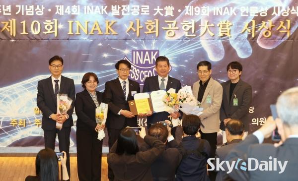 ¡ã ¹Î°æµÎ(¸Ç ¿À¸¥ÂÊ) ½ºÄ«À̵¥Àϸ® ´ëÇ¥À̻簡 'INAK 10Áֳ⠱â³ä»ó'À» ¼ö»óÇϰí ÀÖ´Ù.