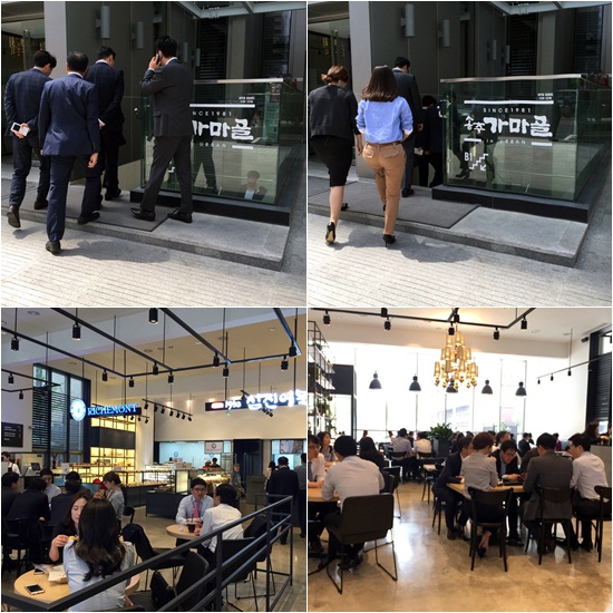 1Ãþ¿¡ À§Ä¡ÇÑ Ä«Æä ÄÝ·Ð ¿ª½Ã ½ÄÈÄ Ä¿ÇǸ¦ Áñ±â±â À§ÇÑ ¼Õ´Ôµé·Î °¡µæ á´Ù. °°Àº Ãþ¿¡ À§Ä¡ÇÑ ¡®¸®Ä¡¸óµå Á¦°úÁ¡¡¯°ú ¡®»ïÁø¾î¹¬¡¯¿¡µµ ¹ß°ÉÀ½ÀÌ À̾îÁ³´Ù.