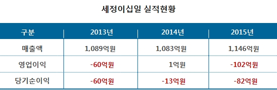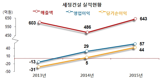 ¼¼Á¤°ú¹Ì·¡ Àç°í ÀÚ»êÀº Áö³ 2012³â 307¾ï¿ø¿¡¼ Áö³ÇØ 374¾ï¿øÀ¸·Î ´Ã¾î³µ´Ù. ¹Ý¸é ¼¼Á¤°Ç¼³Àº Áö³ÇØ 44¾ï¿øÀÇ ´ç±â¼øÀÌÀÍÀ» ´Þ¼ºÇß´Ù. ¼¼Á¤±×·ì °ü°èÀÚ´Â ÁÖ¾÷ÀÎ ÀÇ·ù»ç¾÷°ú °Ç¼³¾÷ÀÇ Èñºñ°¡ ±³Â÷Çϰí ÀÖ´Ù´Â ÁöÀû¿¡ ´ëÇØ ¡°°Ç¼³Àº ±×·ì »ç¾÷¿¡¼ Æ÷Áö¼ÇÀÌ Å©Áö ¾Ê´Ù¡±¸ç ¡°ÀÇ·ù ½ÇÀû ºÎÁøÀº Àü¹ÝÀûÀ¸·Î ÆÐ¼Ç ¾÷ȲÀÌ ¾î·Á¿ü±â ¶§¹®¡±À̶ó°í ¼³¸íÇß´Ù.