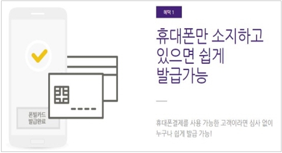 17ÀÏ °ü·Ã¾÷°è µî¿¡ µû¸£¸é KT´Â Áö³ 6ÀÏ Æùºô¹æ½Ä(Phonebill¡¤ÈÞ´ëÆù ¼Ò¾×°áÁ¦)À» ÀÌ¿ëÇÑ ¿ÀÇÁ¶óÀÎ ÇÃ¶ó½ºÆ½ Ä«µå ¡®ÆùºôÄ«µå¡¯¸¦ Ãâ½ÃÇß´Ù. ÆùºôÄ«µå´Â ÀϹÝÄ«µå¿Í »ý±è»õ¡¤»ç¿ë¹ý µîÀÌ µ¿ÀÏÇÏÁö¸¸ °áÁ¦ ¹æ½Ä¿¡¼ Â÷À̰¡ ÀÖ´Ù. °èÁÂÀÌü³ª Áö·Î µîÀÇ Á÷Á¢ ³³ºÎ ¹æ½ÄÀÌ ¾Æ´Ñ ÈÞ´ëÆù¿ä±Ý¿¡ ÇÔ²² û±¸µÇ´Â ¹æ½ÄÀÌ´Ù.