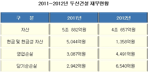 ½ÇÁ¦ µÎ»ê°Ç¼³Àº 2008³â ±Û·Î¹ú ±ÝÀ¶À§±â ÀÌÈÄ ÀÏ»ê À§ºê´õÁ¦´Ï½º ÁÖÅûç¾÷¿¡¼ ´ë±Ô¸ð ¹ÌºÐ¾ç µîÀ¸·Î Å« ¼Õ½ÇÀ» ÀÔÀ¸¸é¼ ¾î·Á¿ò¿¡ ºüÁ® 2011³â°ú 2012³â 2³â¿¬¼Ó ¿µ¾÷ÀÌÀÍ ÀûÀÚ¸¦ ±â·ÏÇß´Ù.