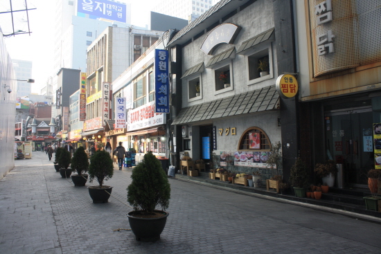 ¡ã °ú°Å ¼¿ïÀÇ ´ëÇ¥Àû À¯Èï°Å¸®·Î À¯¸í¼¼¸¦ ź ºÏ⵿Àº ¹ýÁ¶´ÜÁö, »ï¼º»ç¿Á, ¼Ò±Ô¸ð »ç¹«½Ç µîÀÇ ÀÌÀü°ú ³²´ë¹®½ÃÀå ħü µîÀ¸·Î À¯Èï¾÷¼Ò°¡ »ç¶óÁö¸é¼ ¸ÔÀÚ°ñ¸ñÀ¸·Î º¯Çß´Ù. ÇöÀç À̰÷ ÀÏ´ë´Â °ñ¹ðÀÌ, Ä®±¹¼ö, ºÒ°í±â, »ï°èÅÁ µîÀÇ À½½ÄÁ¡ °Å¸®°¡ Çü¼ºµÅ ÀÖ´Ù. »çÁøÀº ºÏ⵿ ¸ÔÀÚ°ñ¸ñ À§Ä¡µµ(»ó) ¹× À½½ÄÁ¡ ÀÏ´ë Àü°æ. ¨Ï½ºÄ«À̵¥Àϸ®