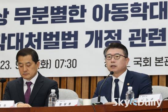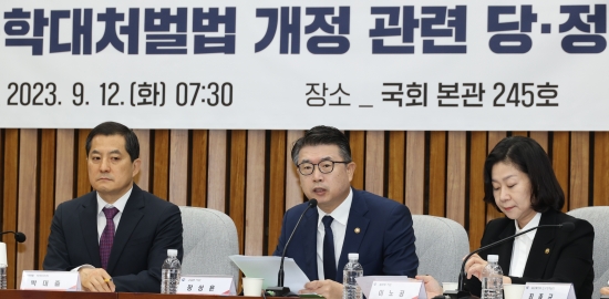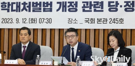 ¡ã Àå»óÀ±(°¡¿îµ¥) ±³À°ºÎ Â÷°üÀÌ 12ÀÏ ¿ÀÀü ¼¿ï ¿©Àǵµ ±¹È¸¿¡¼ ¿¸° ¡®±³¿ø ´ë»ó ¹«ºÐº°ÇÑ ¾Æµ¿ÇÐ´ë ½Å°í¿¡ ´ëÀÀÇÑ ¾Æµ¿Çдëó¹ú¹ý °³Á¤¡¯ °ü·Ã ´ç¡¤Á¤ÇùÀÇȸ¿¡¼ ¸ðµÎ¹ß¾ðÀ» Çϰí ÀÖ´Ù. ¹Ú¹Ì³ª ¼±ÀÓ±âÀÚ ¨Ï½ºÄ«À̵¥Àϸ®