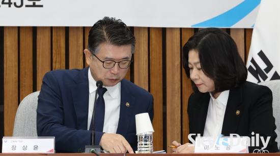 ¡ã Àå»óÀ±(¿ÞÂÊ) ±³À°ºÎ Â÷°ü°ú ÀÌ³ë°ø ¹ý¹«ºÎ Â÷°üÀÌ ´ëȸ¦ ³ª´©°í ÀÖ´Ù.