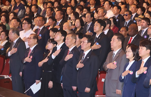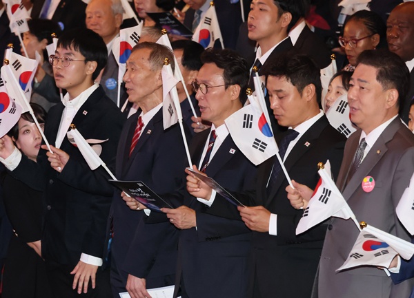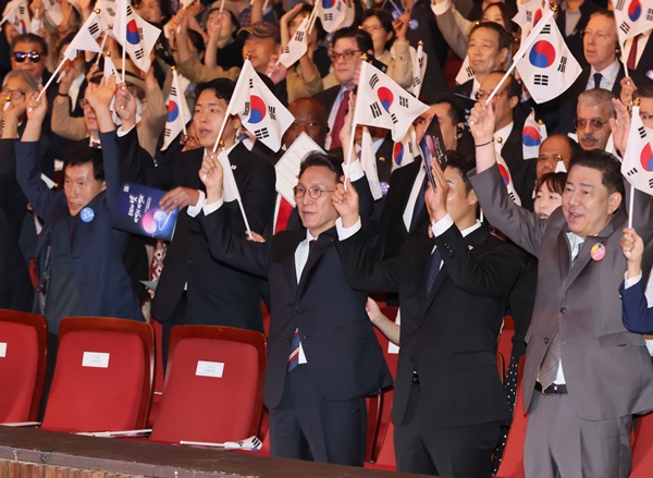 ¡ã ¼¿ï Á¾·Î±¸ ¼¼Á¾¹®Èȸ°ü¿¡¼ 3ÀÏ ¿¸° °³ÃµÀý °æÃà½Ä¿¡¼ ±è¹Î¼® ±¹¹«ÃѸ®¿Í Âü¼®ÀÚµéÀÌ ¸¸¼¼»ïâÀ» ÇÑ µÚ űر⸦ Èçµé°í ÀÖ´Ù. ±è ÃѸ®´Â À̳¯ ¡°±¹¹ÎÁÖ±ÇÁ¤ºÎ´Â ±¹¹Î ÅëÇÕ°ú ¹Î»ý ȸº¹¿¡ Èû¾²°í µÎÅÍ¿î ½Å·Ú¸¦ ¹ÙÅÁÀ¸·Î ±¹Á¦»çȸ¿Í Çù·ÂÇØ »õ·Î¿î ½Ã´ë¸¦ ¿¾î°¡°Ú´Ù¡±°í ¹àÇû´Ù. ¿¬ÇÕ´º½º