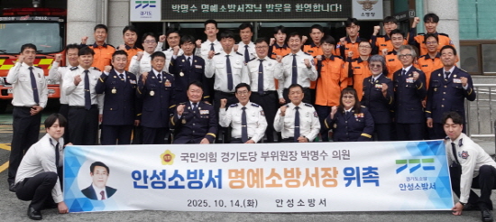 ¹Ú¸í¼ö °æ±âµµÀÇ¿øÀÌ 14ÀÏ ¾È¼º¼Ò¹æ¼ ¡®1ÀÏ ¸í¿¹¼Ò¹æ¼À塯À¸·Î À§Ã˵Ǿî, ¾È¼º °ü³» ¼Ò¹æ ÇöȲ ¹× ÁÖ¿ä Çö¾È¿¡ ´ëÇÑ ¾÷¹«º¸°í¸¦ ¹Þ´Â µî ÇöÀå ¼Ò¹æÈ°µ¿°ú ´ëÀÀ ü°è Àü¹ÝÀ» Á÷Á¢ Á¡°ËÇÏ´Â ½Ã°£À» °¡Á³´Ù.