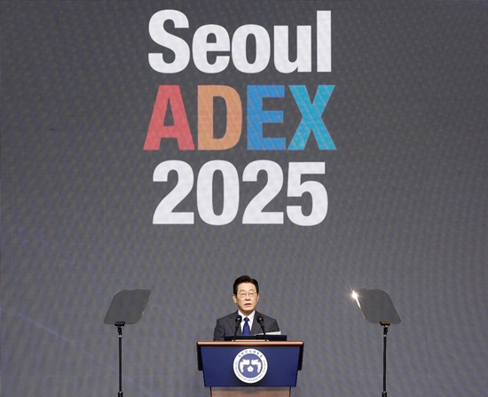 ¡ã ÀÌÀç¸í ´ëÅë·ÉÀÌ 20ÀÏ °æ±â °í¾ç½Ã ŲŨ½º¿¡¼­ ¿­¸° ¼­¿ï ADEX 2025 °³¸·½Ä¿¡¼­ Ãà»çÇϰí ÀÖ´Ù. °í¾ç=¿¬ÇÕ´º½º