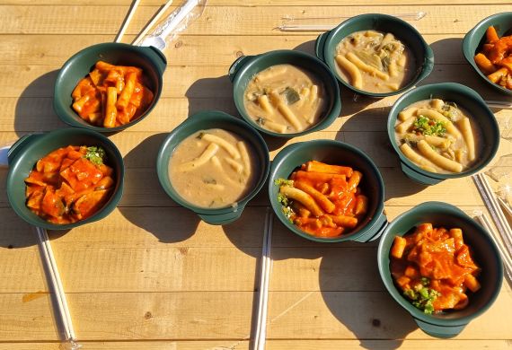 ±×·¯³ª ÀÏȸ¿ëǰ »ç¿ëÀ» ÁÙÀ̱â À§ÇØ ÀçȰ¿ë ±×¸©À» Ȱ¿ëÇÏ°í ¹æ¹®°´ÀÌ ÆíÈ÷ ¾É¾Æ À½½ÄÀ» ¸ÔÀ» ¼ö ÀÖµµ·Ï ¾ß¿Ü ½ÄŹÀ» ¿î¿µÇÑ Á¡Àº µ¸º¸¿´´Ù.