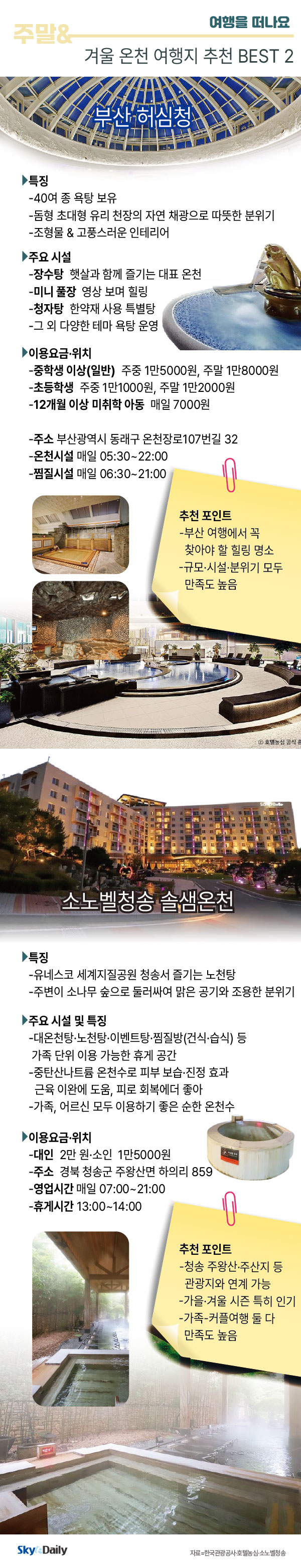 °Ü¿ï ±â¿ÂÀÌ ÇÏ·ç°¡ ´Ù¸£°Ô ¶³¾îÁö¸é¼ ¸ö°ú ¸¶À½À» µ¿½Ã¿¡ ³ì¿©ÁÙ ¿Âõ ¿©ÇàÁö°¡ ÁÖ¸ñ¹Þ°í ÀÖ´Ù. Àü±¹ °÷°÷¿¡ ÀÚ¸®ÇÑ ¿Âõ ¸í¼ÒµéÀº µû¶æÇÑ ¹°·Î ÇǷθ¦ Ç®¾îÁÙ »Ó ¾Æ´Ï¶ó °¡Á· ´ÜÀ§ ¿©Çà°´µµ ¸¸Á·½Ãų ´Ù¾çÇÑ Áñ±æ °Å¸®¿Í ÈÞ½Ä °ø°£À» °®Ãß°í ÀÖ¾î °Ü¿ïö Èú¸µ ¿©ÇàÁö·Î °¢±¤¹Þ´Â´Ù. ÀÌ °¡¿îµ¥ ºÎ»ê ¡®Çã½Éû¡¯, °æºÏ û¼Û ¡®¼Ö»ù¿Âõ¡¯ÀÌ ´ëÇ¥ÀûÀ¸·Î ÃßõµÇ´Â °÷µéÀÌ´Ù.