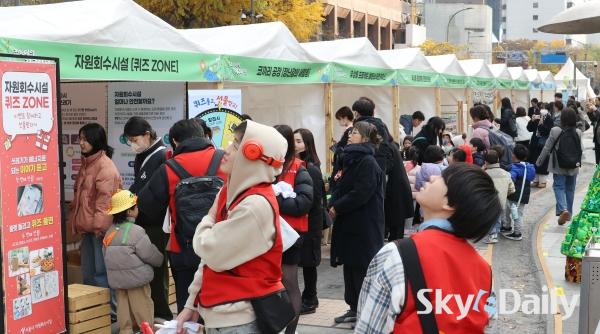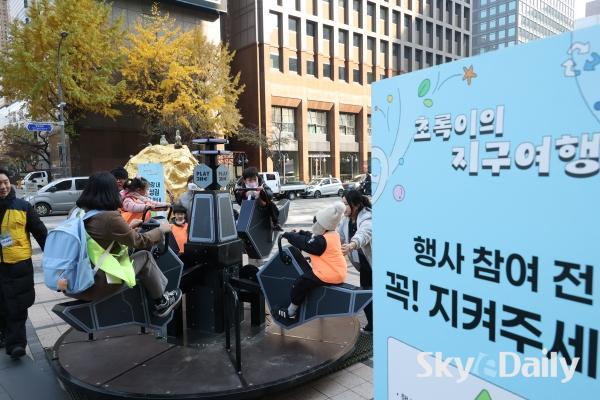 ¡ã ¼¿ï½Ã¿Í ¼¿ïµðÀÚÀÎÀç´Ü, ¼¿ï»õȰ¿ëÇÁ¶óÀÚ ÁÖÃÖ·Î ½Ã¹ÎÀÇ ÀÏ»ó ¼Ó ÀÚ¿ø¼øÈ¯ ½ÇõÀ» È®»êÇϱâ À§ÇÑ ¡®2025 ÀÚ¿ø¼øÈ¯ ½Ã¹ÎÇà»ç - ÃÊ·ÏÀÌÀÇ Áö±¸¿©Çà(Green's Earth Journey)¡¯ÀÌ 20ÀÏ ¼¿ï û°è±¤Àå ÀÏ´ë¿¡¼ ¿¸®°í ÀÖ´Â °¡¿îµ¥ ÇÑ ¾î¸°À̰¡ 'ÀÚÀü°Å Á꽺' üÇè ÇÁ·Î±×·¥À» ÁøÇàÇϰí ÀÖ´Ù. À̹ø Çà»ç´Â ¡®ÀÏ»ó ¼Ó ÀÚ¿ø¼øÈ¯ ½Çõ È®»ê¡¯À» ÁÖÁ¦·Î, ¾î¸°ÀÌ¡¤Çлý, Çкθð, ±â¾÷¡¤´Üü µî Àü ¼¼´ë°¡ Âü¿©ÇØ ÀÚ¿ø¼øÈ¯ÀÇ °¡Ä¡¿Í ½Çõ ¹æ¹ýÀ» üÇèÇϸç ȯ°æ º¸È£ÀÇ Á߿伺À» µÇ»õ±â´Â ±âȸ¸¦ Á¦°øÇÑ´Ù. ¹Ú¹Ì³ª ±âÀÚ ¨Ï½ºÄ«À̵¥Àϸ®