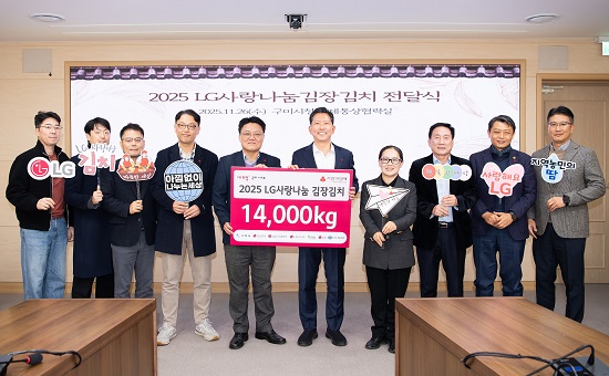 LG°æºÏÇùÀÇȸ°¡ 26ÀÏ ±¸¹Ì½Ãû¿¡¼ Áö¿ª »çȸº¹Áö½Ã¼³µé°ú °á¿¬¼¼´ë¿¡ ±èÀå±èÄ¡ ¾à 1¸¸4000kg(6500¸¸ ¿ø »ó´ç)À» Áö¿øÇÏ´Â ¡®2025 LG»ç¶û³ª´® ±èÀå±èÄ¡ Àü´Þ½Ä¡¯À» °¡Á³´Ù.