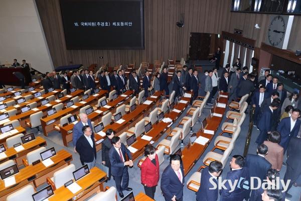 ¡ã Ãß°æÈ£ ±¹¹ÎÀÇÈû ÀÇ¿øÀÌ 27ÀÏ ¿ÀÈÄ ¼¿ï ¿©Àǵµ ±¹È¸¿¡¼ ¿¸° Á¦429ȸ±¹È¸(Á¤±âȸ) Á¦13Â÷ º»È¸ÀÇ¿¡¼ ÀÚ½ÅÀÇ Ã¼Æ÷µ¿ÀǾȿ¡ ´ëÇØ ½Å»ó¹ß¾ðÀ» Çϰí ÀÖ´Ù. À̳¯ ±¹¹ÎÀÇÈû ÀÇ¿øµéÀº Ãß ÀÇ¿øÀÇ ½Å»ó ¹ß¾ðÀ» ¸¶Ä£ µÚ Àü¿ø ÅðÀåÇÑ °¡¿îµ¥ Ãß ÀÇ¿ø¿¡ ´ëÇÑ Ã¼Æ÷µ¿ÀǾÈÀÌ º»È¸ÀǸ¦ Åë°úÇß´Ù. ¹Ú¹Ì³ª ±âÀÚ ¨Ï½ºÄ«À̵¥Àϸ®