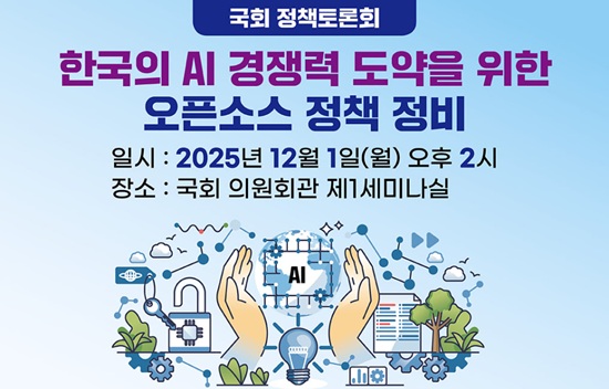 ȲÁ¤¾Æ ´õºÒ¾î¹ÎÁÖ´ç ÀÇ¿ø(°úÇбâ¼úÁ¤º¸¹æ¼ÛÅë½ÅÀ§¿øÈ¸, ´ëÀü À¯¼ºÀ»)Àº 12¿ù 1ÀÏ ¿ÀÈÄ 2½Ã ±¹È¸ ÀÇ¿øÈ¸°ü Á¦1¼¼¹Ì³ª½Ç¿¡¼ ¡® Çѱ¹ÀÇ AI °æÀï·Â µµ¾àÀ» À§ÇÑ ¿ÀǼҽº Á¤Ã¥ Á¤ºñ ¡¯¸¦ ÁÖÁ¦·Î ±¹È¸ Åä·Ðȸ¸¦ °³ÃÖÇÑ´Ù.