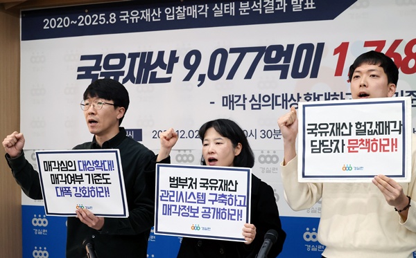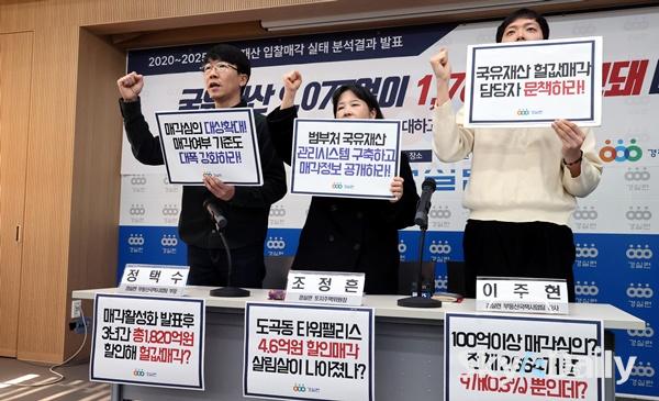 ¡ã 2ÀÏ ¼¿ï Á¾·Î±¸ °æ½Ç·Ã¿¡¼ Ȱµ¿°¡µéÀÌ 2020~2025.8 ±¹À¯Àç»ê ÀÔÂû¸Å°¢ ½ÇÅ ºÐ¼®°á°ú ¹ßÇ¥ ±âÀÚȸ°ßÀ» Çϰí ÀÖ´Ù. À̵éÀº ‚æÀ¯Àç»ê 9,077¾ïÀÌ 1,768¾ï(19.5%) ÇÒÀεŠ¸Å°¢µÆ´Ù°í ÁÖÀåÇß´Ù. ÀÌÁ¾¿ø ±âÀÚ ¨Ï½ºÄ«À̵¥Àϸ®