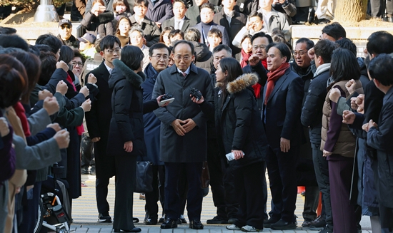 À̳¯ ¿ÀÈÄ ¹ý¿ø ¾Õ¿¡´Â À嵿Çõ ´ëÇ¥, ¼Û¾ð¼® ¿ø³»´ëÇ¥¸¦ ºñ·ÔÇÑ ±¹¹ÎÀÇÈû ÀÇ¿ø ¼ö½Ê ¸íÀÌ »¡°£ ¸ñµµ¸®¸¦ µÎ¸£°í Áý°áÇß´Ù. ¡°Ãß°æÈ£ ±¸¼Ó ±â°¢¡±, ¡°12¿ù3ÀÏ Ç¥°á ¹æÇØ´Â ¾ø¾ú´Ù¡±, ¡°¾ß´ç ¸»»ì ºÒ¹ýƯ°Ë Áß´ÜÇÏ¶ó¡± µîÀÇ ÇÇÄÏÀÌ ÀÏÁ¦È÷ µé·È°í, ÀÇ¿øµéÀº ¡°Ãß°æÈ£ ÈÀÌÆÃ¡±, ¡°ÀÌÀç¸í½Ä Á¤Ä¡º¸º¹ Áß´ÜÇÏ¶ó¡± µîÀÇ ±¸È£¸¦ ¿¬ÀÌ¾î ¿ÜÃÆ´Ù.
