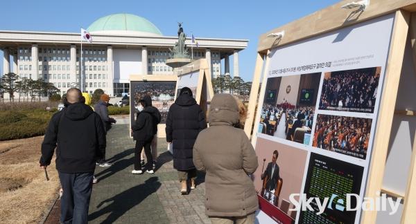 ¡ã 3ÀÏ ¼¿ï ¿©Àǵµ ±¹È¸ Àܵ𸶴çÀ» ãÀº ½Ã¹ÎµéÀÌ 12¡¤3 ºñ»ó°è¾ö ÇØÁ¦ 1ÁÖ³â ¸Â¾Æ '12¡¤3 ±¹È¸ÀÇ ¹ã, 2½Ã°£ 30ºÐ'À̶ó´Â ÁÖÁ¦·Î ¿¸° »çÁøÀüÀ» °ü¶÷Çϰí ÀÖ´Ù. ¹Ú¹Ì³ª ±âÀÚ ¨Ï½ºÄ«À̵¥Àϸ®