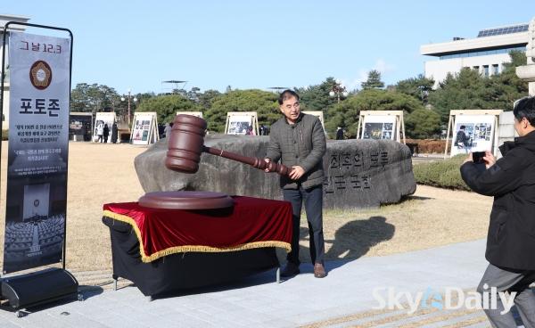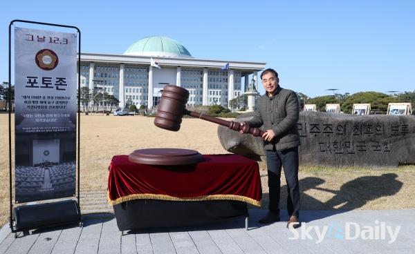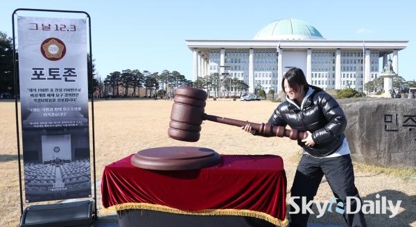 ¡ã 12¡¤3 ºñ»ó°è¾ö »çÅ 1³âÀ» ¸Â¾Æ 3ÀÏ ¿ÀÈÄ ±¹È¸¸¦ ãÀº '±¤ÁÖ 5¡¤£±£¸ »õº®Ã»¼Ò³â ¿ÀÄɽºÆ®¶ó¡® ´Ü¿øµéÀÌ ¡®¹ÎÁÖÁÖÀÇ ÃÖÈÄÀÇ º¸·ç, ´ëÇѹα¹ ±¹È¸¡¯¶ó´Â ±Û±Í°¡ »õ°ÜÁø ±¹È¸ »ó¡¼®¿¡¼ ±â³äÃÔ¿µÀ» Çϰí ÀÖ´Ù. ±¹È¸´Â Áö³ 7¿ù 17ÀÏ Á¦77ÁÖ³â Á¦ÇåÀý ¶§ ±¹È¸ Àܵð±¤Àå¿¡ ±¹¹Î°ú ÇÔ²² ºñ»ó°è¾öÀÇ À§±â¸¦ ±Øº¹Çϰí Çå¹ýÀ» ¼öÈ£ÇÑ ¿ª»çÀû »ç¸íÀ» µÇ»õ±â¸ç ¹ÎÁÖÁÖÀǸ¦ ÁöÄѰ¡°Ú´Ù´Â ´ÙÁüÀ» ´ãÀº »õ »ó¡¼®À» ¼¼¿ü´Ù. ¹Ú¹Ì³ª ±âÀÚ ¨Ï½ºÄ«À̵¥Àϸ®