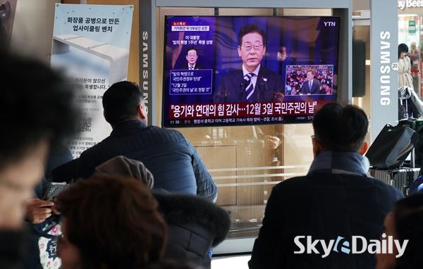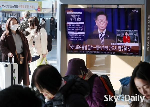 ¡ã ºñ»ó°è¾ö 1³âÀ» ¸ÂÀº 3ÀÏ ¼­¿ï¿ª ´ëÇսǿ¡¼­ ½Ã¹ÎµéÀÌ ÀÌÀç¸í ´ëÅë·ÉÀÇ 'ºûÀÇ Çõ¸í 1ÁÖ³â, ´ë±¹¹Î Ưº°¼º¸í' ¹ßÇ¥¸¦ ¹æ¼ÛÀ¸·Î ÁöÄѺ¸°í ÀÖ´Ù. ÀÌÁ¾¿ø ±âÀÚ ¨Ï½ºÄ«À̵¥Àϸ®