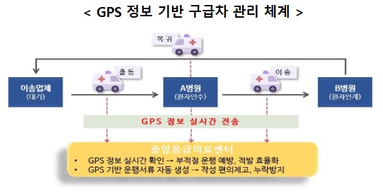 º¹ÁöºÎ´Â ÀÌ¿¡ µû¶ó ±¸±ÞÂ÷ ¿îÇà Àü °úÁ¤À» ½Ç½Ã°£ GPS Á¤º¸¿¡ ±â¹ÝÇØ °ü¸®Çϴ ü°è·Î ÀüȯÇϱâ·Î Çß´Ù. ¾ÕÀ¸·Î ±¸±ÞÂ÷°¡ Ã⵿Çϸé À§Ä¡¿Í À̵¿ °æ·Î°¡ Áß¾ÓÀÀ±ÞÀÇ·á¼¾ÅÍ¿¡ ½Ç½Ã°£ Àü¼ÛµÇ¸ç, »ó½Ã ¸ð´ÏÅ͸µ ½Ã½ºÅÛÀ» ÅëÇØ ¿µ¾÷±¸¿ª À§¹Ý, ºÒÇÊ¿äÇÑ Àå°Å¸® À̵¿, ÀÌ»óÇÑ Á¤Â÷ ÆÐÅÏ µîÀÌ Áï½Ã Æ÷ÂøµÇµµ·Ï ÇÑ´Ù´Â °èȹÀÌ´Ù.