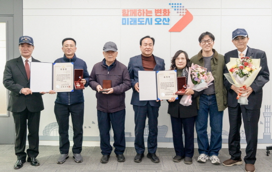 °æ±âµµ ¿À»ê½Ã°¡ 9ÀÏ 6¡¤25ÀüÀï ÂüÀüÀ¯°øÀÚÀÎ °í ¹Ú°æ¿ »óº´°ú °í ÀüÀå¿Á ÁØÀ§ÀÇ À¯°¡Á·¿¡°Ô ¡®È¶û¹«°øÈÆÀ塯°ú ÈÆÀåÁõÀ» Àü¼öÇß´Ù°í 10ÀÏ ¹àÇû´Ù.