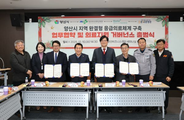 11ÀÏ ¾ç»ê½Ã°¡ Àü³¯ ¾ç»êºñÁî´Ï½º¼¾ÅÍ Á¦2¼¼¹Ì³ª½Ç¿¡¼­ ÀÀ±ÞÀÇ·á±â°ü °øµ¿ Çù·Â ¾÷¹«Çù¾àÀ» ü°áÇϰí Áö¿ª ³» Çʼö¡¤ÀÀ±ÞÀÇ·á ´ëÀÀ ¿ª·® °­È­¸¦ À§ÇÑ ¡®·ÎÄà ÀÇ·áÁö¿ø °Å¹ö³Í½º ±¸Ãà ȸÀÇ¡¯¸¦ °³ÃÖÇß´Ù°í ¹àÇû´Ù.