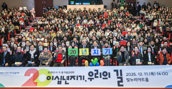 ¼ö¿ø½Ã Áö¿ª»çȸº¸ÀåÇùÀÇü°¡ 20³â µ¿¾È °É¾î¿Â ¹ßÀÚÃ븦 ´ãÀº ¿µ»ó ¡®À̽ʳâÁö±â ¿ì¸®ÀÇ ±æ¡¯À» »ó¿µÇÑ ÈÄ ºñÀü2030 ¼±Æ÷½ÄÀ» ¿­¾ú´Ù. ¼±Æ÷½Ä¿¡¼­ »ýµ¿°¨Å©·ç°¡ ÇâÈÄ Áö¿ª º¹ÁöÀÇ ¹æÇâÀ» ½Ã°¢ÀûÀ¸·Î Ç¥ÇöÇÑ ¡®¶óÀÌÆ®º¼ ¹Ìµð¾î ÆÛÆ÷¸Õ½º¡¯¸¦ ÆîÃÆ´Ù.